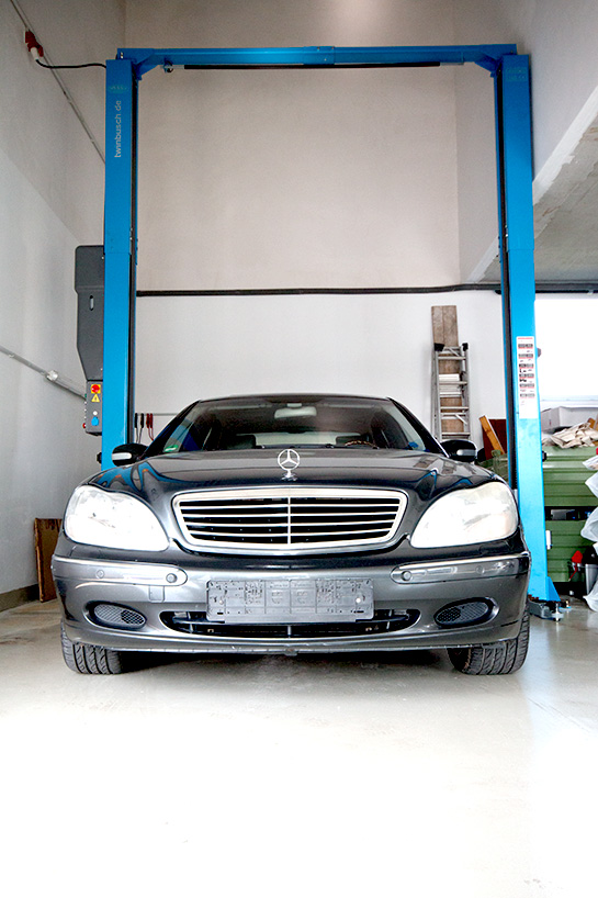 In unserer modernen und hellen Halle mit Hebebühne können Sie wetterunabhängig Ihr Fahrzeug inspizieren – so lange und gründlich Sie möchten.